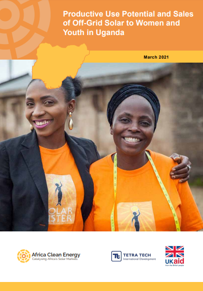 Description: Women make up 51 per cent of Uganda’s population and the country has one of the youngest populations in the world, with young people making up more than 50 per cent of the total population. Forty-four per cent of households in the country have a family member with a disability, 12 per cent of who have someone with a severe disability. Persons living with disabilities (PLWD) also make up about 10 per cent of the working population. Studies have shown that failure to address gender equality and disability in national programmes can have a detrimental effect on development, including energy programmes. For instance, loses in productivity due to ineffectively addressing disability range from 1 per cent to 7 per cent of GDP. Therefore, exploring and addressing GESI in productive use of OGS will contribute to improving livelihoods, increasing incomes and overall poverty reduction, especially for women, youth and PLWD.