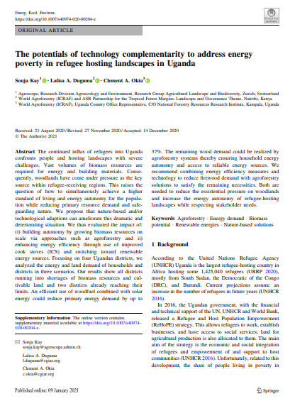 Description: The continued influx of refugees into Uganda confronts people and hosting landscapes with severe challenges. Vast volumes of biomass resources are required for energy and building materials. Consequently, woodlands have come under pressure as the key source within refugee-receiving regions. This raises the question of how to simultaneously achieve a higher standard of living and energy autonomy for the population while reducing primary resource demand and safeguarding nature.